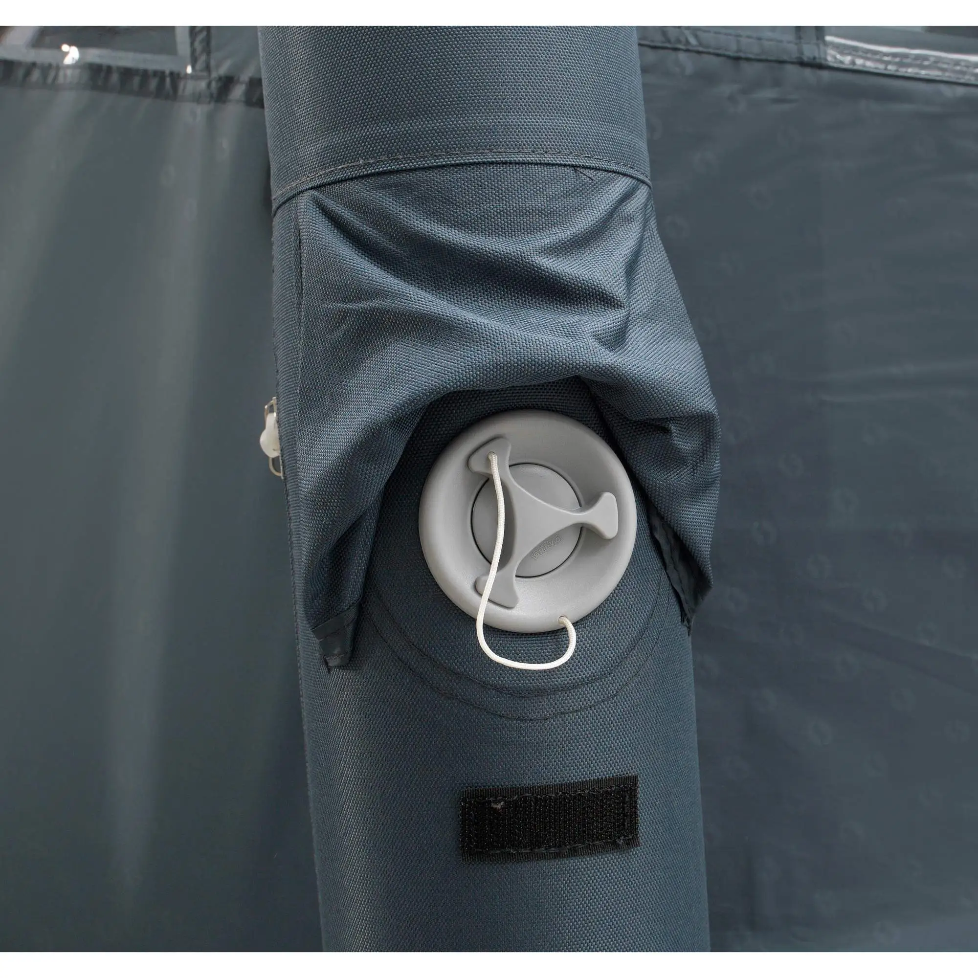 Drei dicke Luftschläuche spannen das Zelt straff auf. Für einen schnellen Aufbau verwendest du die beiliegende Luftpumpe. Ein Rückschlagventil am Luftkanal verhindert das Entweichen der Luft beim Abnehmen des Pumpschlauchs. Das komplette Zelt ist so in rund 10 Minuten aufgebaut und bezugsfertig.